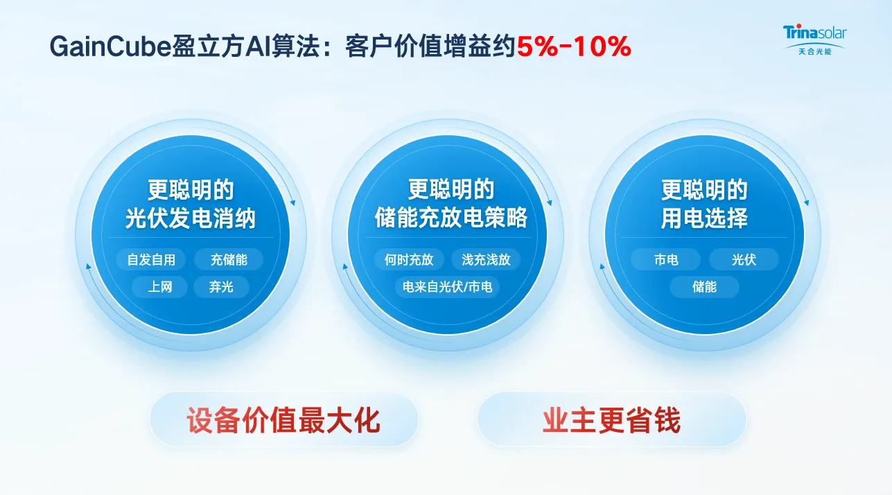 先进组件再配合天合储能系统,更是能实现“1+1>2”的效果!如同建了一座电力“蓄水池”:富余时存电,高峰或缺电时释放,灵活调配。配备智能管家:自动优化能源分配,确保每一度电都用在刀刃上,效率最大化,成本最小化!