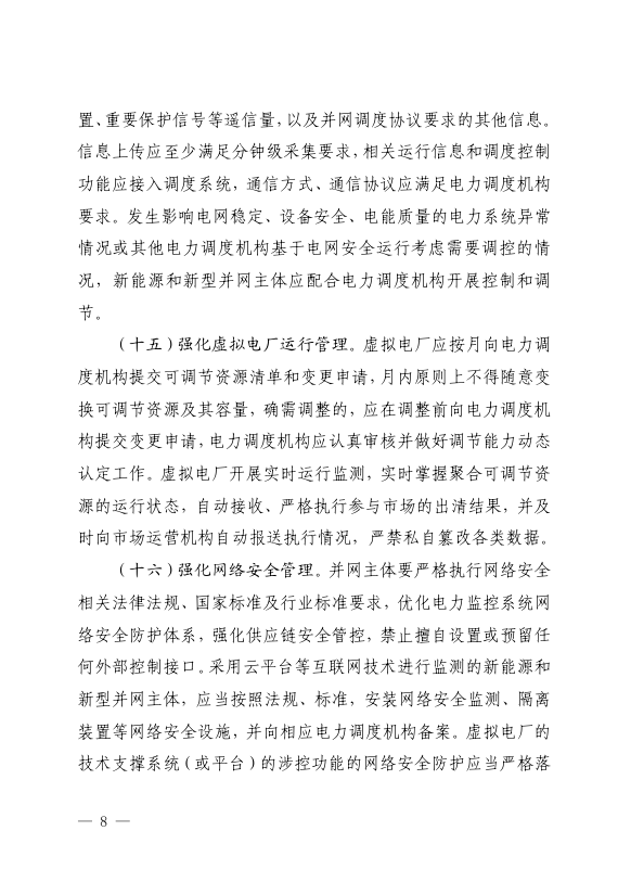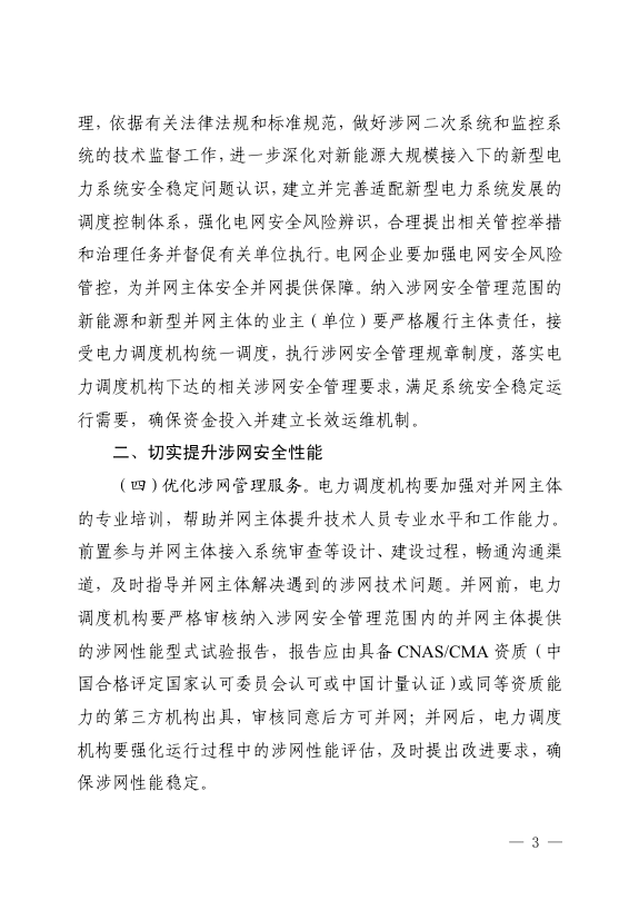 《通知》明确将海上风电、陆上风电、光伏、储能及虚拟电厂等纳入涉网安全管理范围,要求并网主体严格遵循国家标准,确保设备配置与系统运行满足安全稳定需求,同时压实电力调度机构、电网企业及业主单位的三方责任。