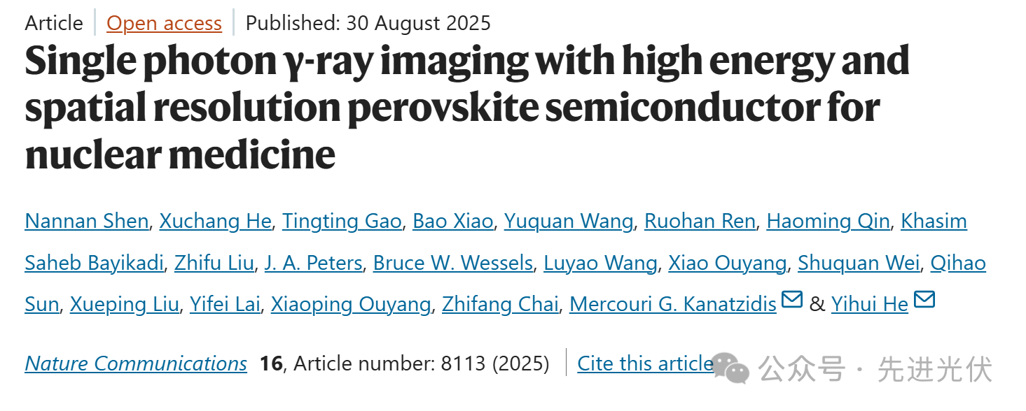 Shen, N., He, X., Gao, T. et al. Single photon γ-ray imaging with high energy and spatial resolution perovskite semiconductor for nuclear medicine. Nat Commun 16, 8113 (2025).