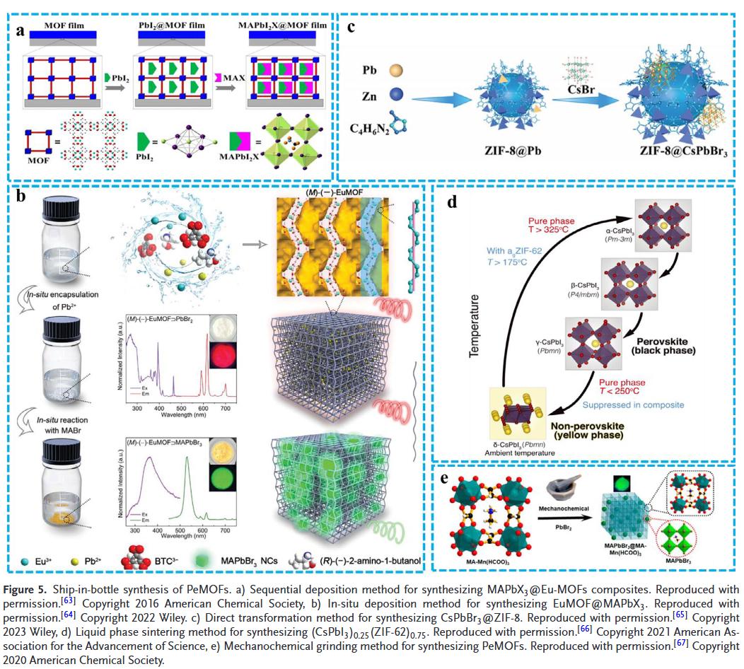 近年来,将卤化物钙钛矿封装于金属有机框架(MOFs)中形成复合材料(PeMOFs)的策略受到广泛关注。这种封装显著提升了钙钛矿的稳定性,并改善了其光电性能。