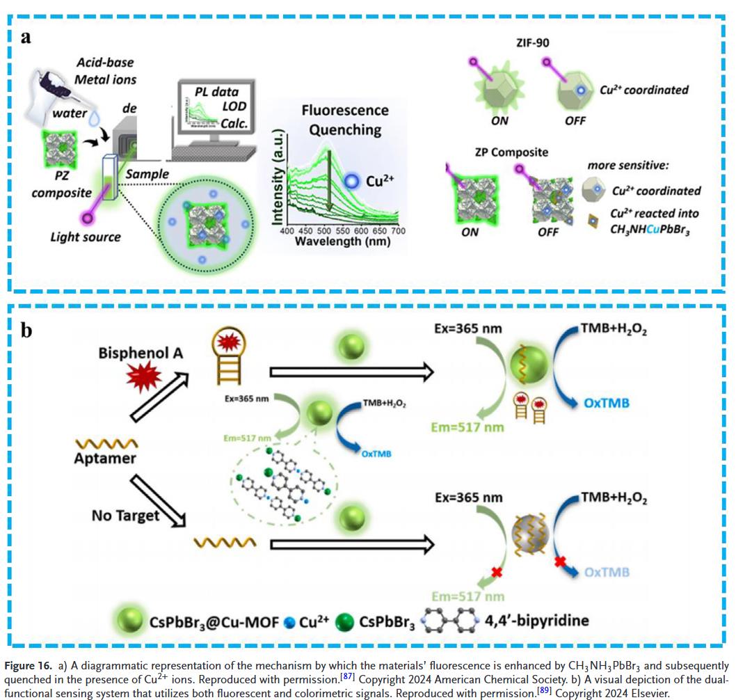 本文系统综述了 PeMOFs 的制备方法、MOFs 在复合材料中的功能作用,以及其在光催化、传感、发光二极管、钙钛矿太阳能电池、荧光防伪、信息加密和探测等多个领域的应用进展,最后展望了该领域的未来发展趋势。