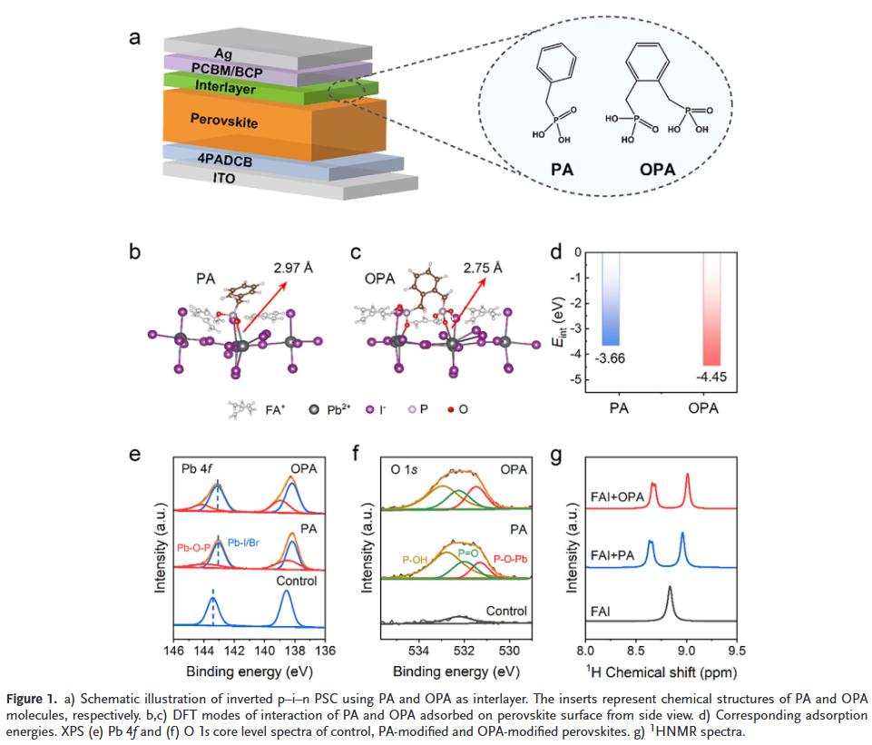 双位点强钝化:首次引入邻苯二膦酸(OPA)作为双位点锚定桥,形成强共价P—O—Pb键,显著提升钝化均匀性与稳定性。