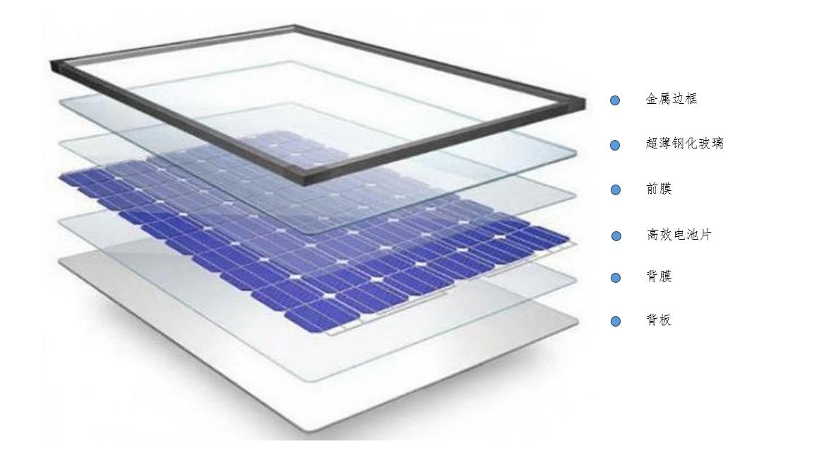 采用超薄化学钢化玻璃 + 高克重纳米改性POE胶膜 + APE高阻水背板的三重组合,兼顾轻量化与高可靠性。