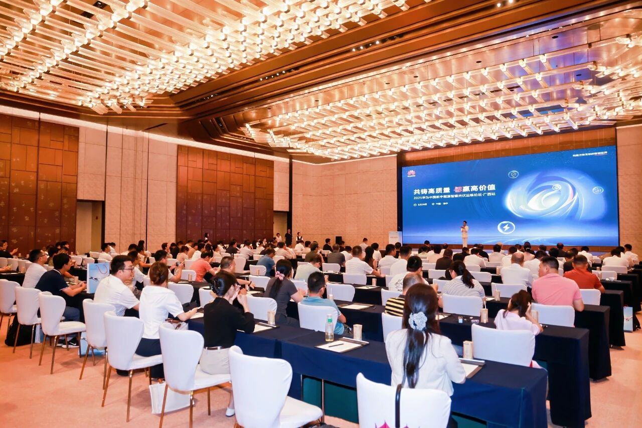华为广西数字能源业务总经理黄立巍作总结发言,他表示,“共铸高质量,智赢高价值”,我们聚焦前沿,共享智慧,我们直面挑战,凝聚共识。未来,我们将新知转化为实践,将共识转化为行动,将合作转化为共赢,为广西青山绿水和社会经济发展贡献能源人的力量!