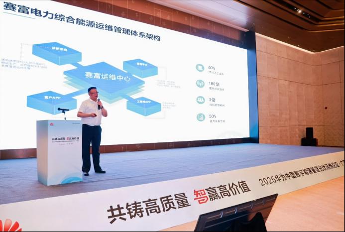 赛富电力集团股份有限公司副总经理孙上峰分享了赛富在电站资产托管与专业化运营服务体系建设,在电站运维板块,通过赛富10大特色的运维方案助力客户电站高效运维,在电站运营板块,依托赛富电力市场化交易预测系统,赋能客户资产价值最大化。