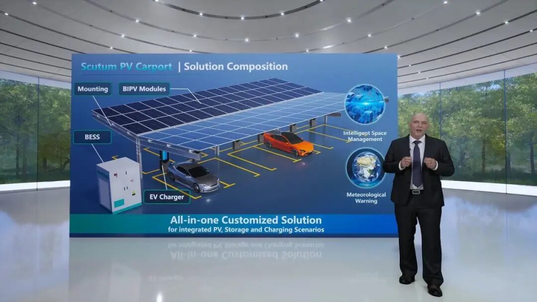 发布会上,苏美达辉伦产品方案发布官James从市场需求、方案特点、应用场景、可持续价值四个维度,对天盾座方案进行了深入解读。从适配户用、工商业、大型公共设施等全场景的四款支架型号,到高强度、轻量化的型材设计;从结构性防水,到模块化、快装方案,苏美达辉伦从客户角度出发,锚定用户痛点,力求降低项目的建设、运输、运营成本,最大化项目收益。高效发电、安全可靠、智慧管理、灵活适配等多重亮点,让天盾座车棚系统在全场景下为用户创造持续的经济效益和环境生态价值。
