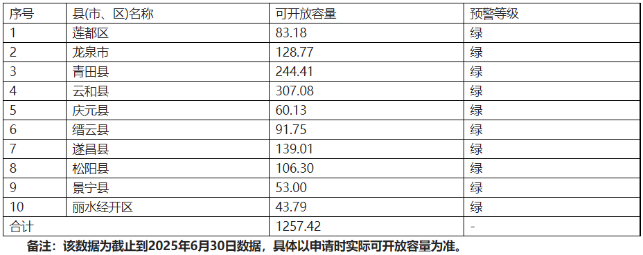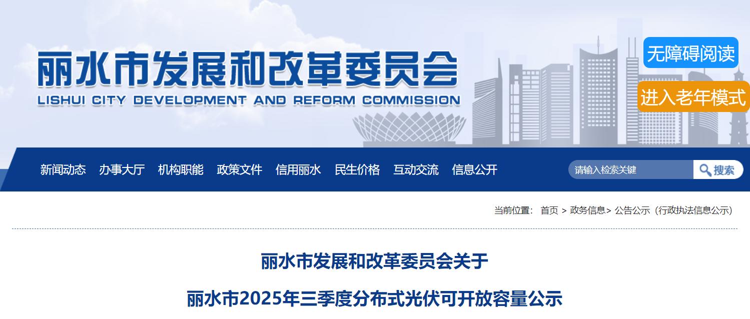 浙江丽水市:2025年三季度分布式光伏可开放容量1.257GW