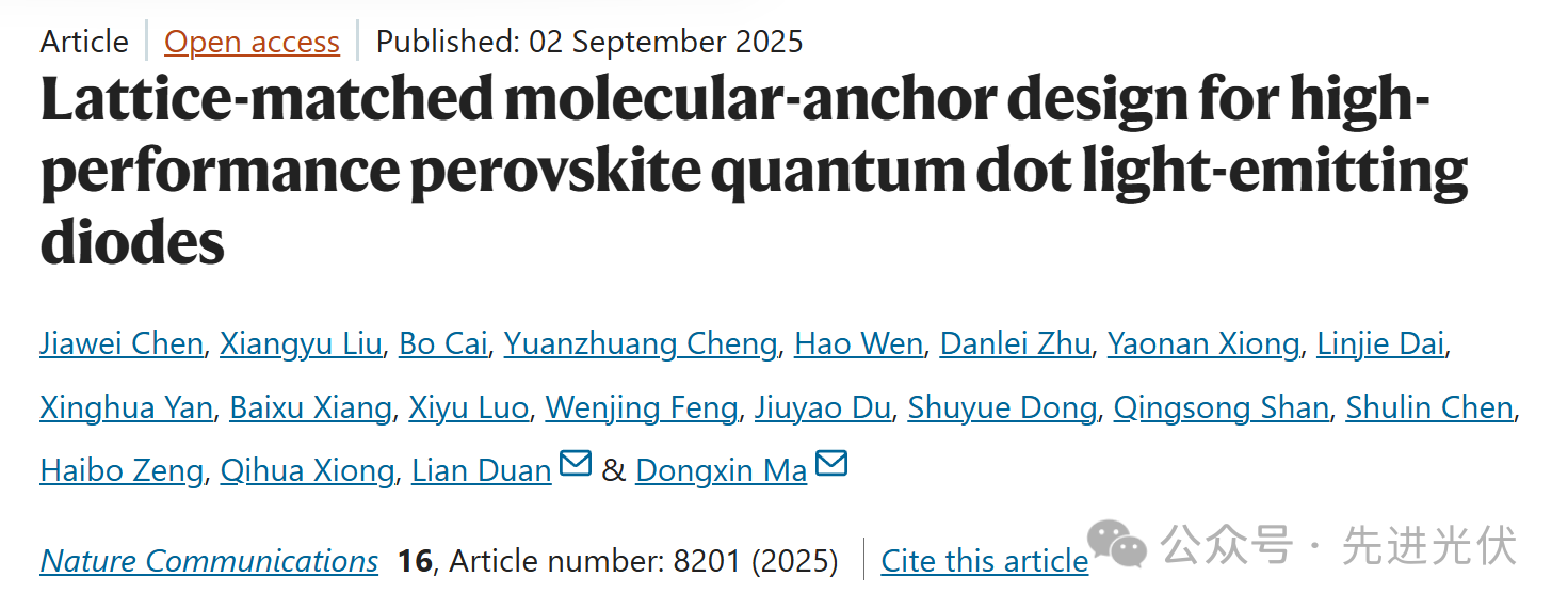 Chen, J., Liu, X., Cai, B. et al. Lattice-matched molecular-anchor design for high-performance perovskite quantum dot light-emitting diodes. Nat Commun 16, 8201 (2025).