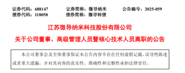 9月1日,微导纳米(688147)发布公告,公司董事会近日收到 LI XIANG 先生提交的辞职报告。LI XIANG因个人原因,辞去公司董事、副总经理和联席 CTO 等职务。辞职后,LI XIANG不再担任公司任何职务,公司也不再认定其为核心技术人员。