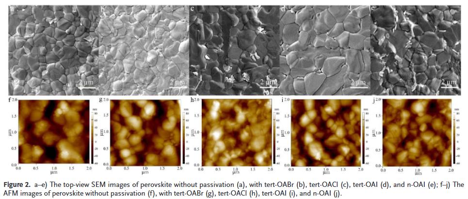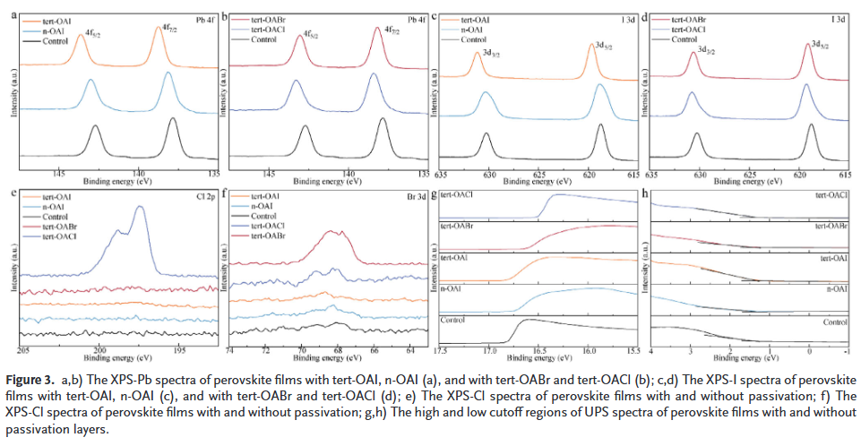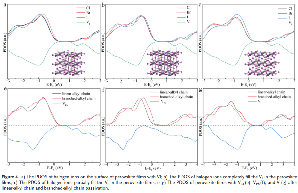 1.支链烷基铵盐(如tert-OAl)对 VPbVPb 和 VFAVFA 缺陷的钝化效果显著优于直链烷基盐,烷基链结构是影响钝化效果的关键因素。