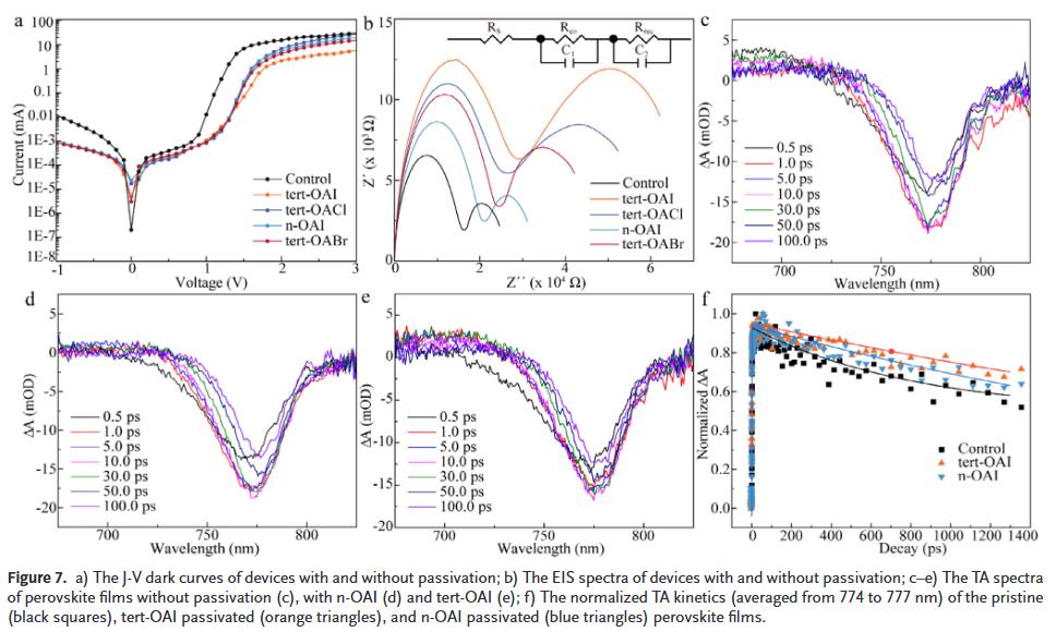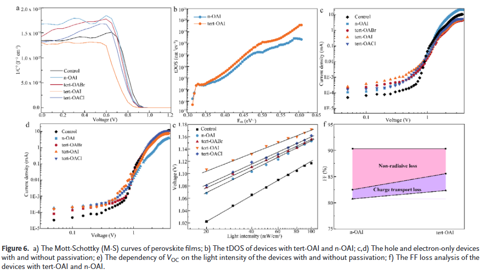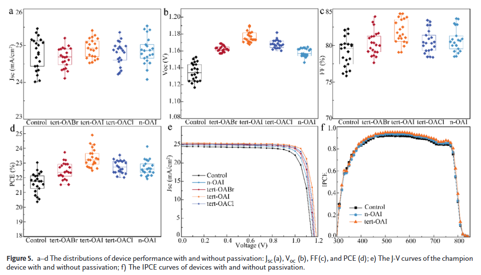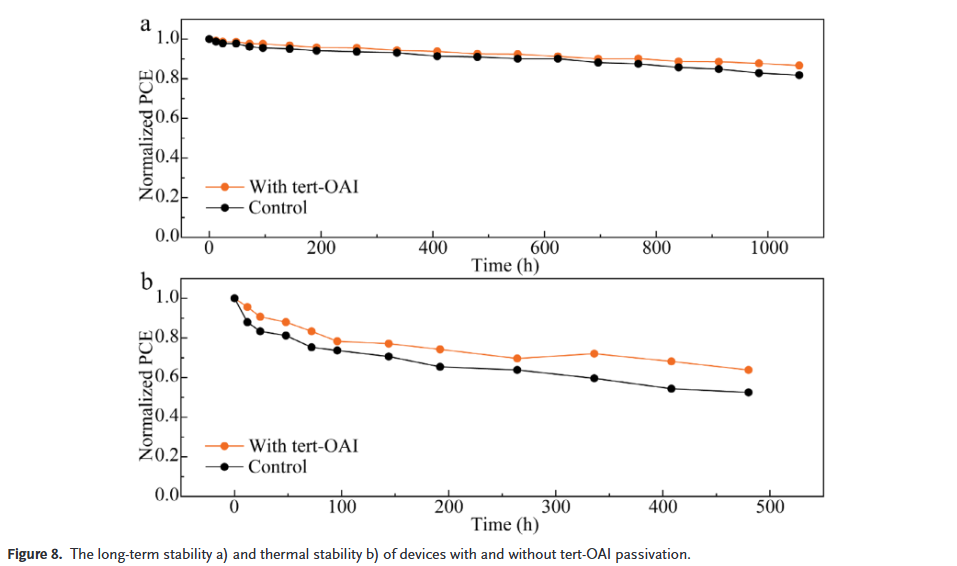 3.tert-OAl 钝化器件效率高达25.49%,并展现出优异的长期稳定性(1000小时后仍保持85%初始效率),为实际应用提供潜力。