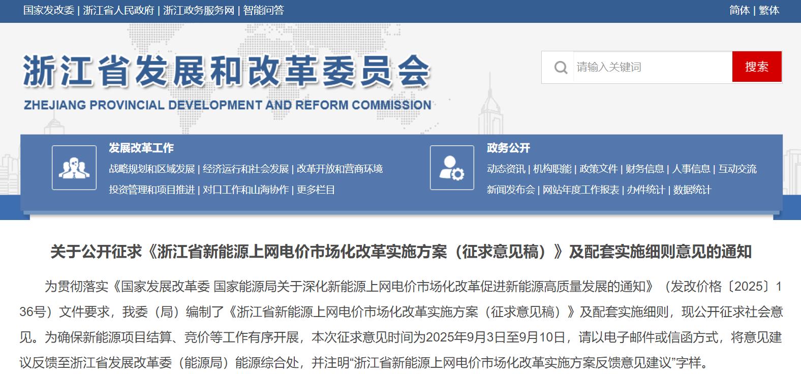 浙江省新能源上网电价市场化改革实施方案(征求意见稿)