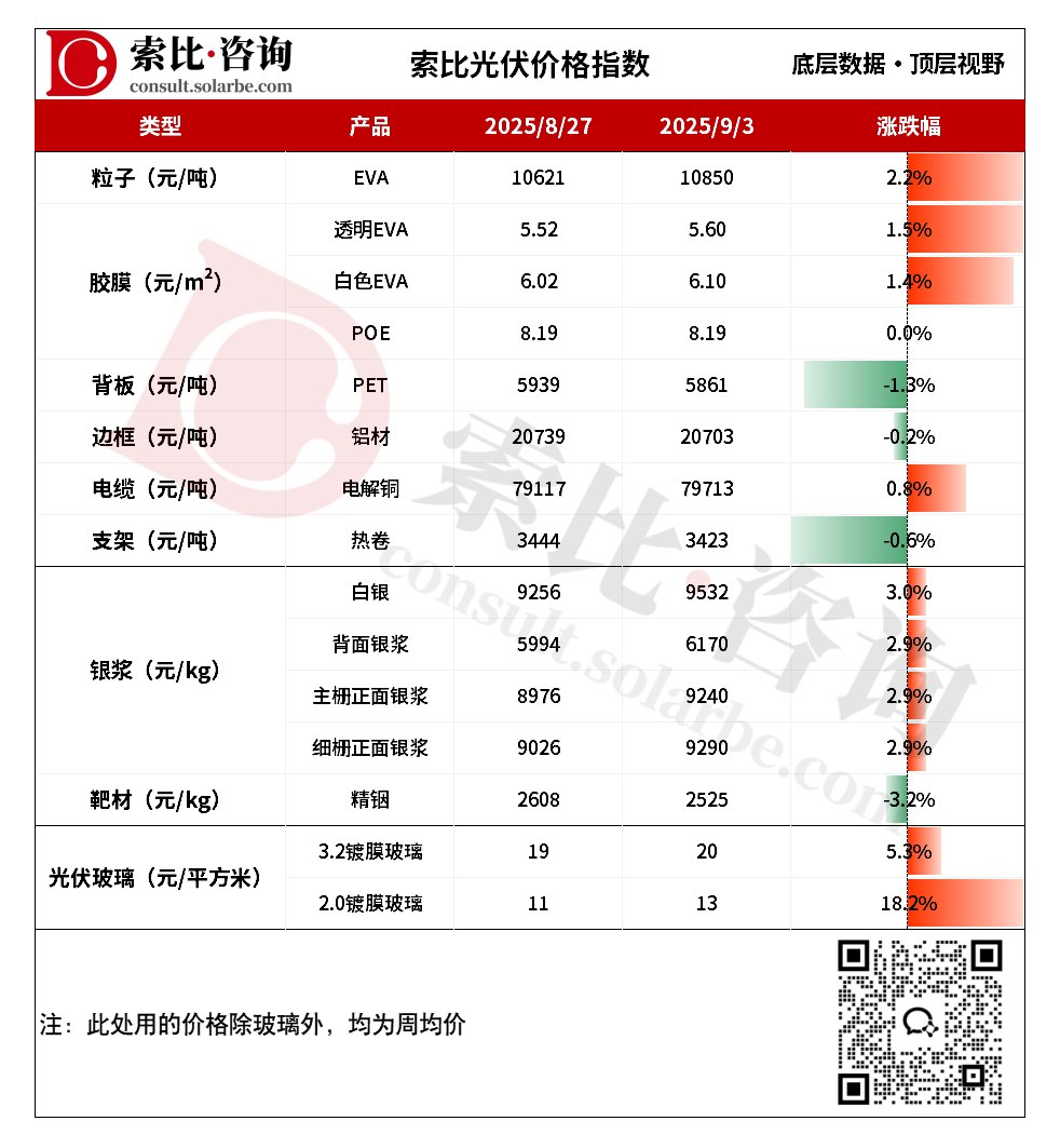 1、数据均为索比咨询整理,价格为均价,有疑问请联系我们,欢迎探讨