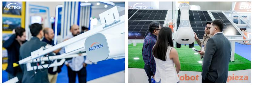 针对墨西哥部分地区山地、沙漠等复杂地形及环境,中信博重点展示了 “跟踪+智能清扫机器人”一站式解决方案。该定制解决方案采用中信博天籁1P跟踪系统,通过定制化设计及智能跟踪增加发电,兼具稳定可靠性、经济友好性。