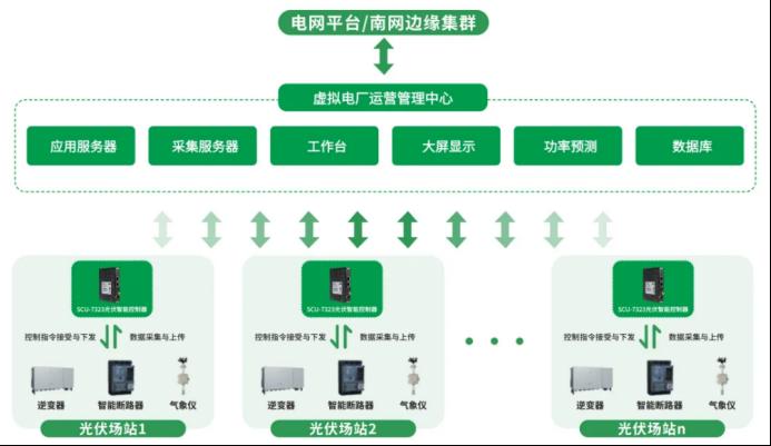 SCU-7323光伏智能控制器应用于光伏场景,是CET中电技术为响应电网精准功率控制需求研发的智能边缘控制产品,实现虚拟电厂调度管理,具有实时性强、控制精度高、控制手段丰富、部署便捷等特点,可配合上层调度平台进行多场站发电功率的统一调控,快速响应功率指令并动态调整光伏场站群的出力,辅助参与需求侧响应。