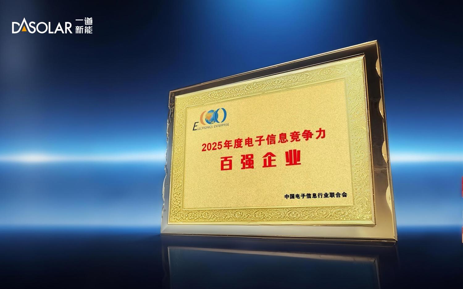 在中国电子信息行业联合会发布的“2025年度电子信息竞争力百强企业”榜单中,一道新能从众多参评企业中脱颖而出,荣耀登榜。该榜单以企业2024年度经营数据为基础,结合行业整体运行情况,通过科学的指数模型综合评估企业竞争力。再度上榜,充分彰显了公司在新能源领域的领先地位与强劲势头。