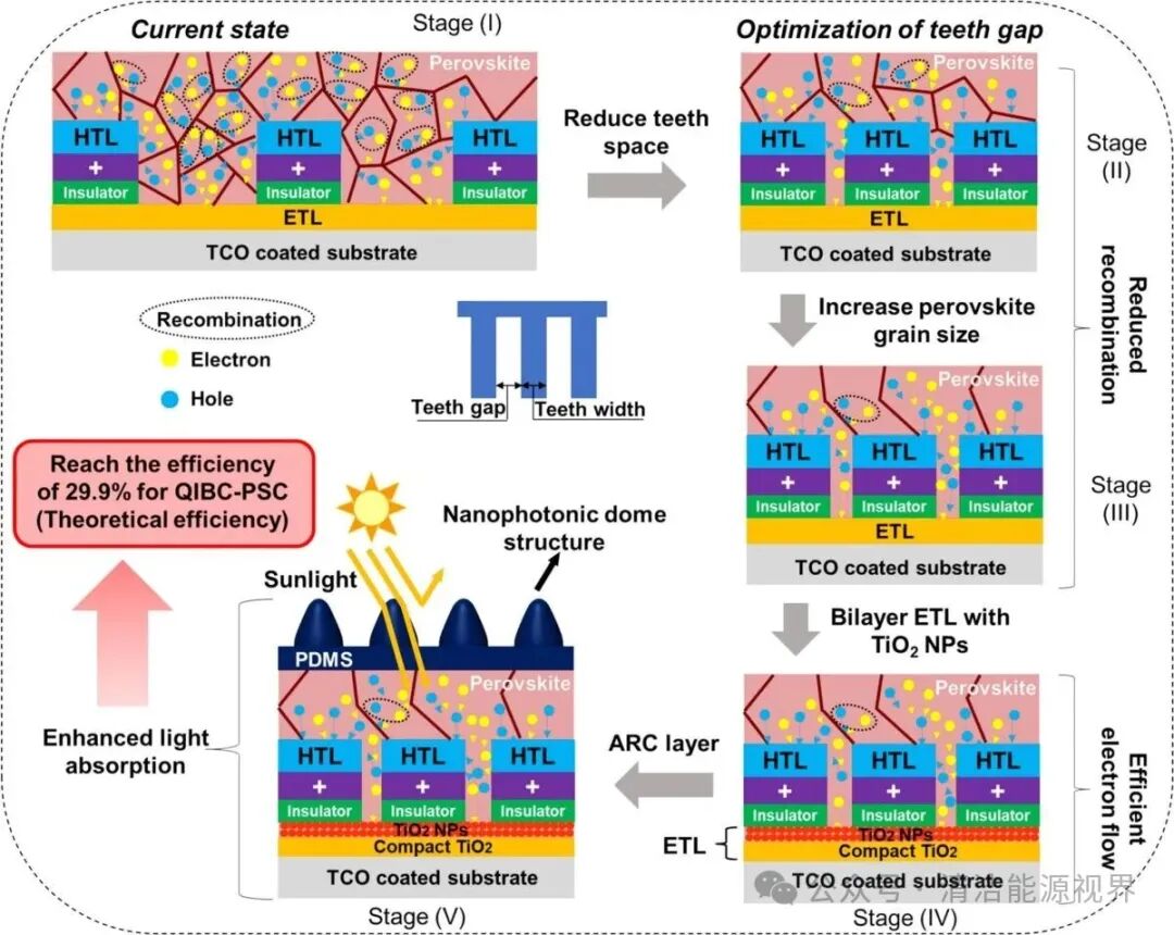 近期,来自日本、沙特阿拉伯与美国的联合研究团队,针对背接触钙钛矿太阳能电池技术展开全面评估,其研究成果为该技术的商业化路径明晰了方向。目前,背接触钙钛矿太阳能电池主要分为叉指背接触(IBC)与准叉指背接触(QIBC)两大技术类型。相较于传统三明治结构电池,这一创新设计彻底摆脱了对透明导电氧化物(TCO)的依赖,大幅降低光损耗,为突破更高转换效率开辟了全新空间。