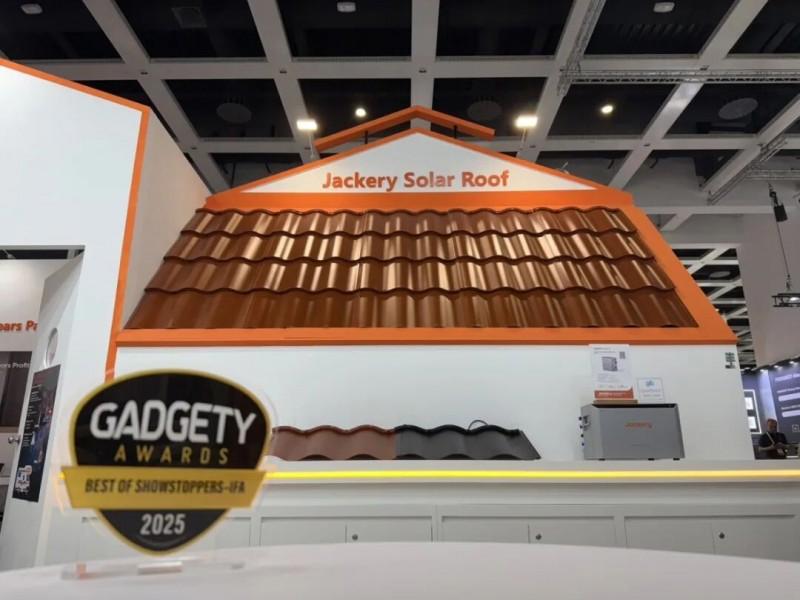 另一款美学曲面光伏瓦打破传统光伏的设计局限,采用0.13毫米厚晶体硅电池,选用的XBC电池转换效率达25%,实现每平方米170W的发电功率;以150°微曲轮廓设计保障全天高效采光,兼容90%以上标准安装系统,搭配墨玉与赤霞双配色,让光伏设备从“建筑附件”变身美学亮点,实现效能与颜值双轨并驱。在本次展会中,凭借其创新技术与美学设计,华宝新能美学曲面光伏瓦从全球众多优秀作品中脱颖而出,一举斩获Gadgety Awards颁发的“2025 Best of ShowStoppers-IFA”大奖。