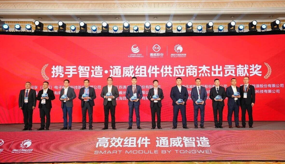 通威太阳能第四届全球合作伙伴大会现场,行业大咖、企业技术专家聚焦行业痛点、前沿技术及发展前景等话题作主旨演讲,分享在推动能源转型过程中的创新实践及经验。同期还举行“TOPCon电池——逐新提质与降本增效”圆桌对话,邀请设备、材料、电池技术等领域领先企业,共探光伏行业新技术、新趋势、新未来。期间,为感谢一路携手同行的合作伙伴,通威太阳能特别颁发了砥砺同行奖、通力合作奖及同舟共济奖,以期与行业同仁互相支持、互相关心,一起奔赴美好未来。