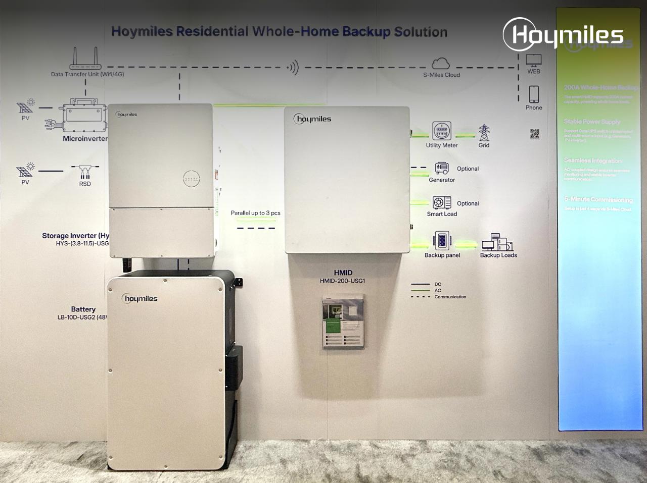 在本次展会上,针对美国家庭用户的多样化能源需求,禾迈重磅推出全屋备份解决方案及离网型储能逆变器OIS,完善当地户用光储应用场景的产品覆盖。