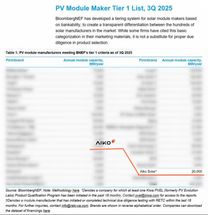 近日,彭博新能源财经(BloombergNEF)公布2025年第三季度 “全球光伏组件厂商分级”排名,爱旭再次成功入选一级光伏组件厂商名单(Tier 1),彰显出爱旭在全球光伏市场的强劲影响力与竞争力,为爱旭在光伏行业领先地位再添新注脚。