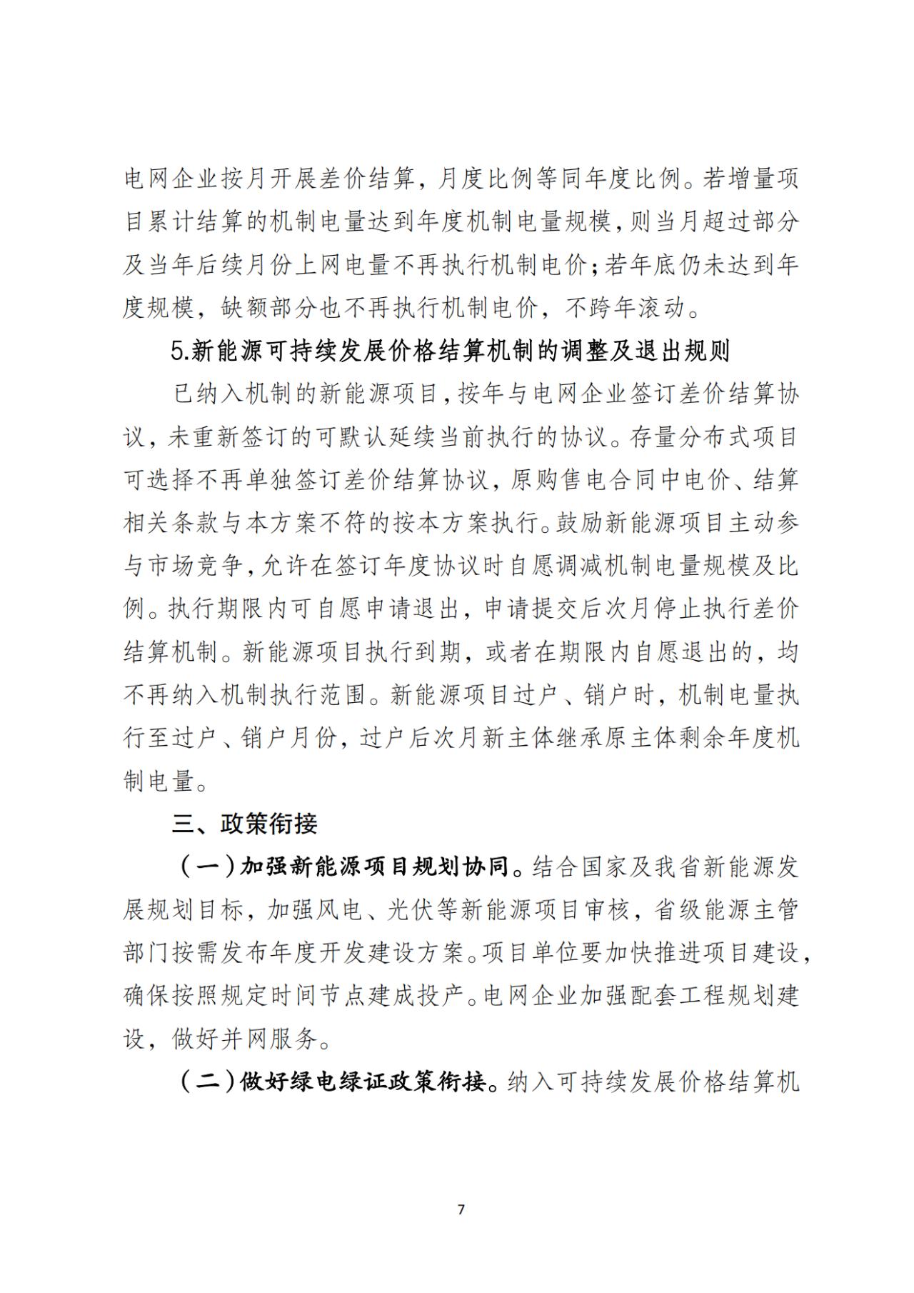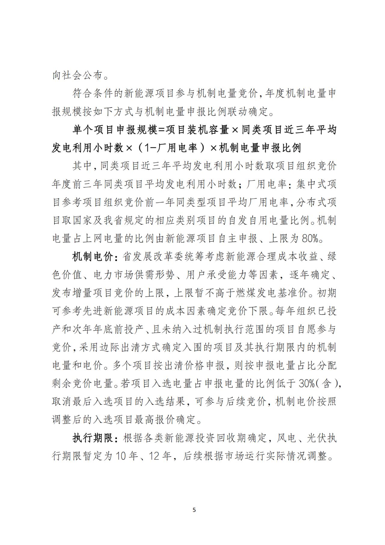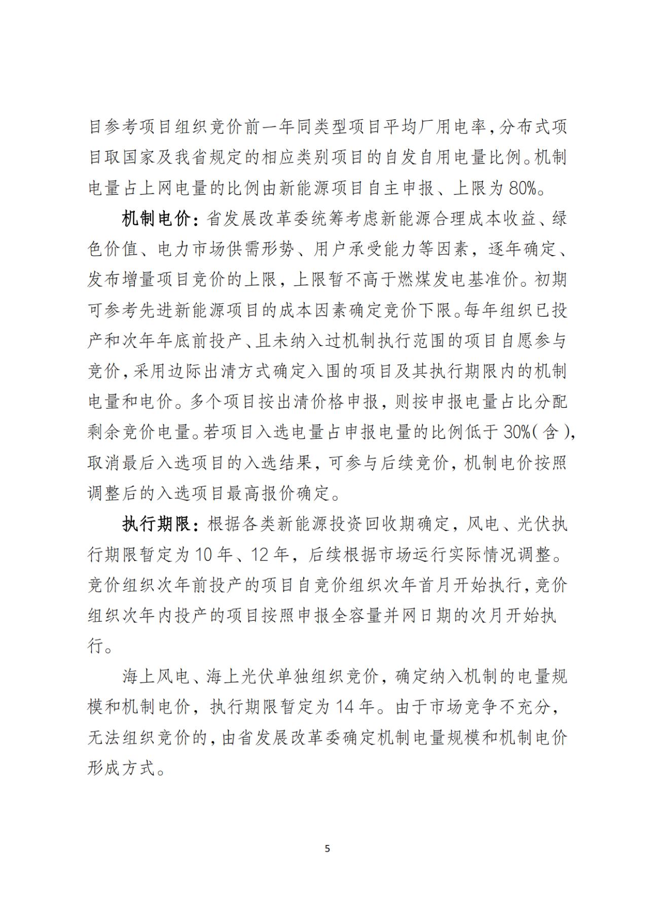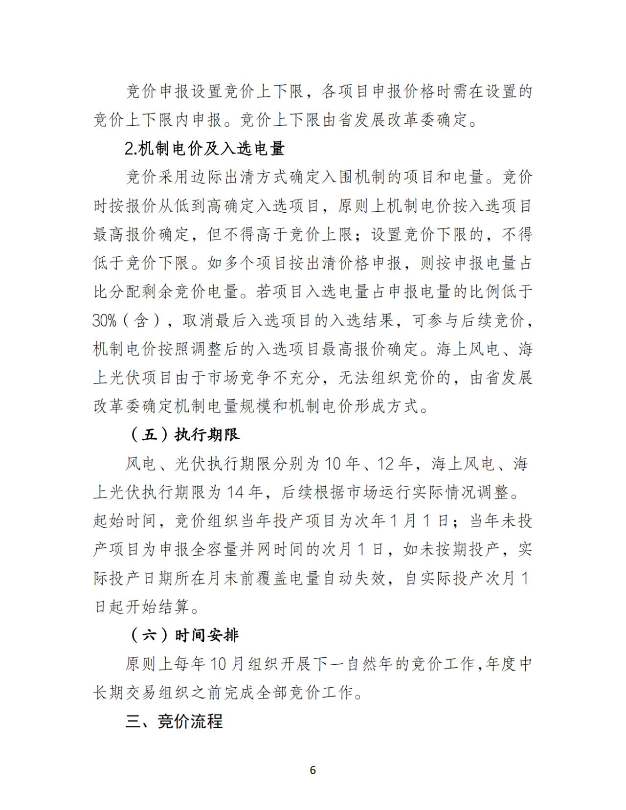 执行期限:风电10年、光伏12年、海风与海光14年,海光与海风由省发展改革委确定机制电量规模和机制电价形成方式