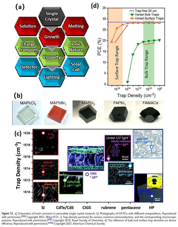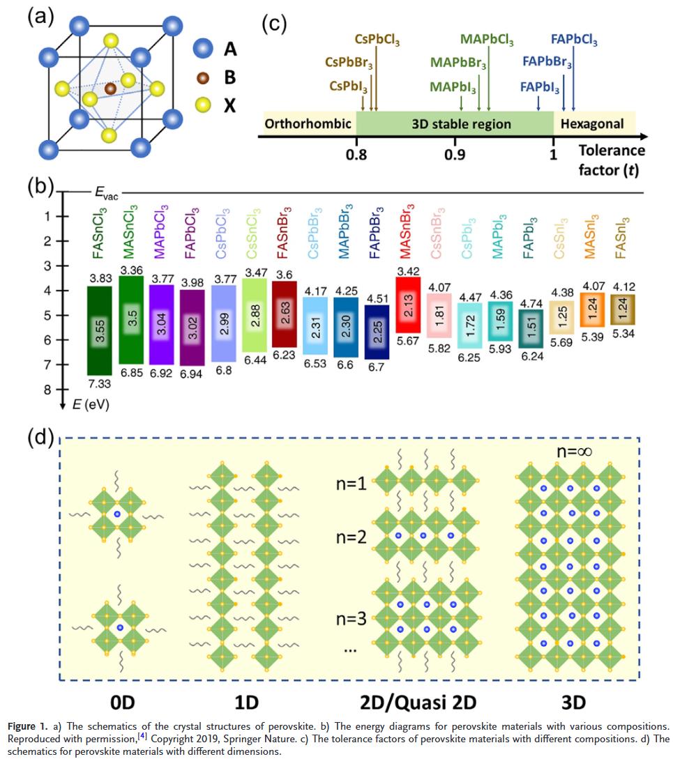 本综述北京航空航天大学张晓亮、吉林大学董庆锋、中科院高鹏、上海交通大学赵一新、北京大学肖立新和广东工业大学丁黎明等人打破了这一局限,系统性地总结了用于太阳能电池的所有钙钛矿类别,包括按成分(有机-无机杂化、全无机、无铅、无金属)、维度(3D与低维钙钛矿类似物)和结晶性(多晶薄膜与单晶)分类的各类材料,旨在为钙钛矿太阳能电池的技术创新与产业化提供全面的路线图。