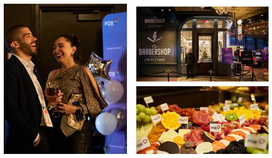 我们还为客户在拉斯维加斯准备了一场别具一格的Happy Hour!地点隐藏在一家美式复古理发店的神秘酒吧,现场不仅提供特调饮品与缤纷酒水,还准备了定制大头贴拍摄、惊喜礼物以及现场乐队表演,让各位客户与合作伙伴共度一个充满惊喜与回忆的夜晚!