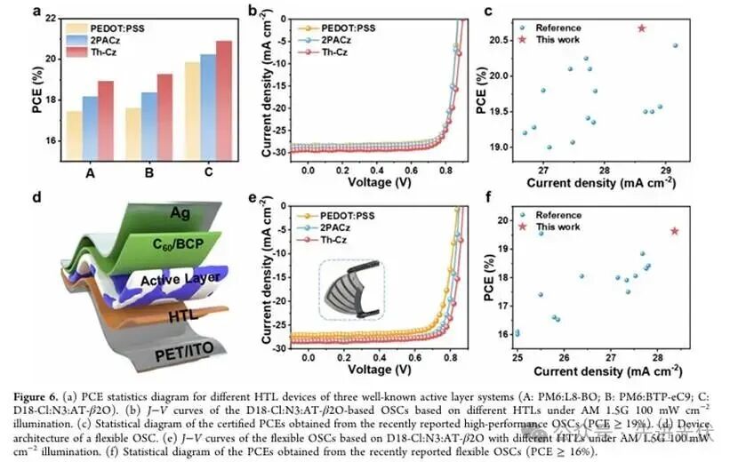 ✅通用性与柔性兼容:在PM6:L8-BO、PM6:BTP-eC9等体系中均表现优异,柔性器件效率达19.63%。