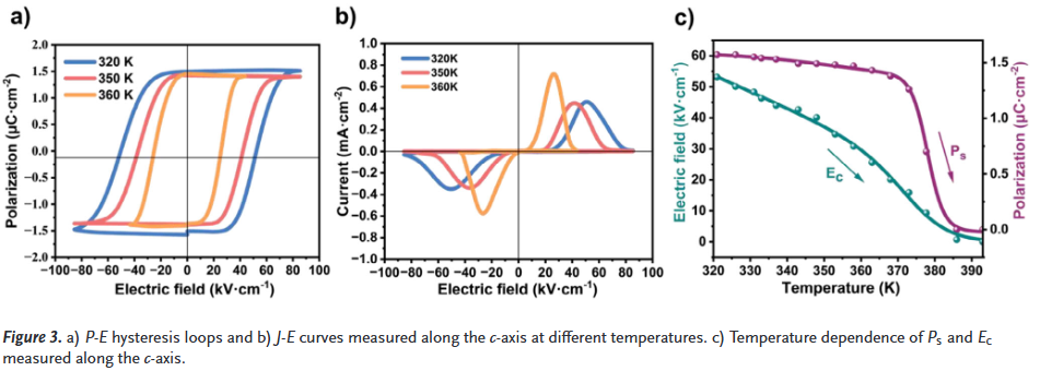- 光电流增强比创纪录:铁电光伏效应与热释电效应协同耦合,光电流增强比高达~4800%,为已知铁电材料中的最高值之一。