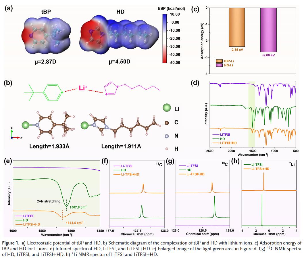 - 新型螯合剂HD替代挥发性tBP:HD凭借更高偶极矩和强Li⁺螯合能力,有效抑制Li⁺迁移与聚集,阻断水分侵入路径,显著提升器件稳定性。