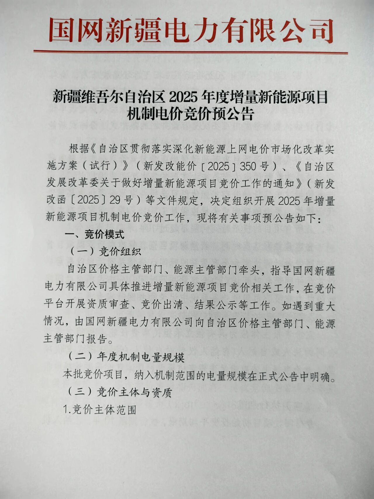 11月28日,广西电力中心发布《关于开展广西增量新能源项目机制电量竞价预登记的通知》,根据通知,对参与新能源增量项目机制电量竞价的项目,开展预登记。项目预登记的条件:2025年6月1日(含后已投产(全容量并网)、计划未来12个月内(截至2026年12月31日)投产含2025年6月1日之前未全容量并网项目)、且未纳入过机制电价执行范围的集中式及分布式新能源项目。