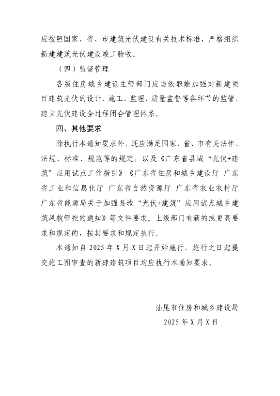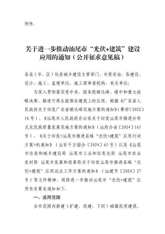 附件:关于进一步推动汕尾市“光伏+建筑”建设应用的通知(公开征求意见稿)