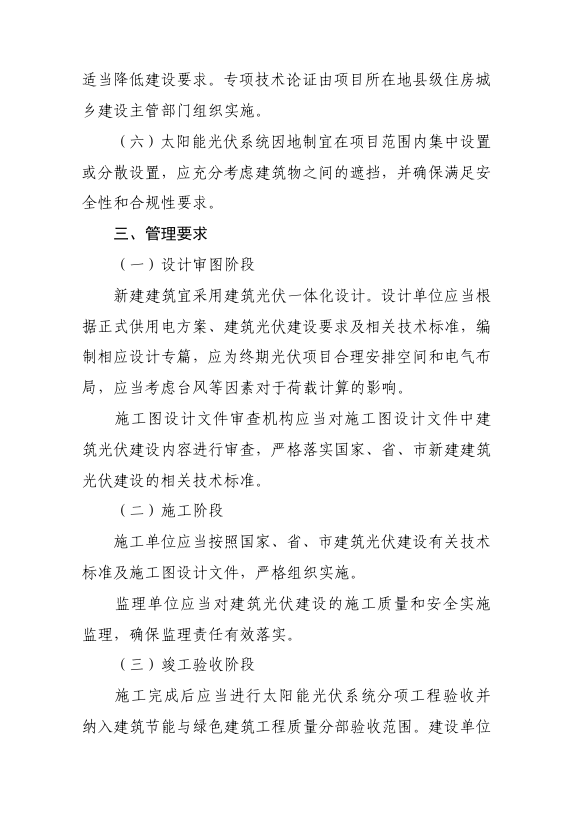 (三)太阳能光伏发电系统遵循安全可靠、协调美观、经济适用的原则,与建筑工程同步规划、同步设计、同步施工、同步验收和运营管理。