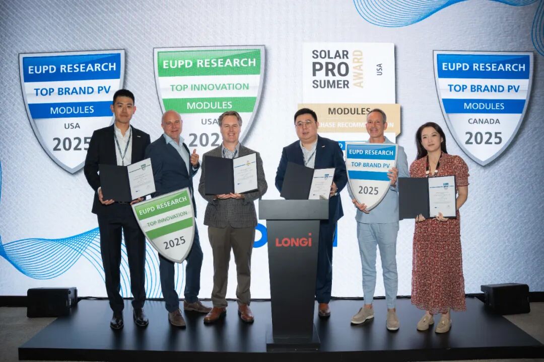 作为全球光伏领域极具公信力的市场研究机构,EUPD Research基于长期市场调研与严格质量评估模型,对隆基的产品创新、市场表现与品牌影响力等方面给予高度认可。此次隆基在北美市场一举斩获三项大奖,获奖数量较去年进一步增加,充分反映了公司在当地市场的深度耕耘与影响力的快速提升。