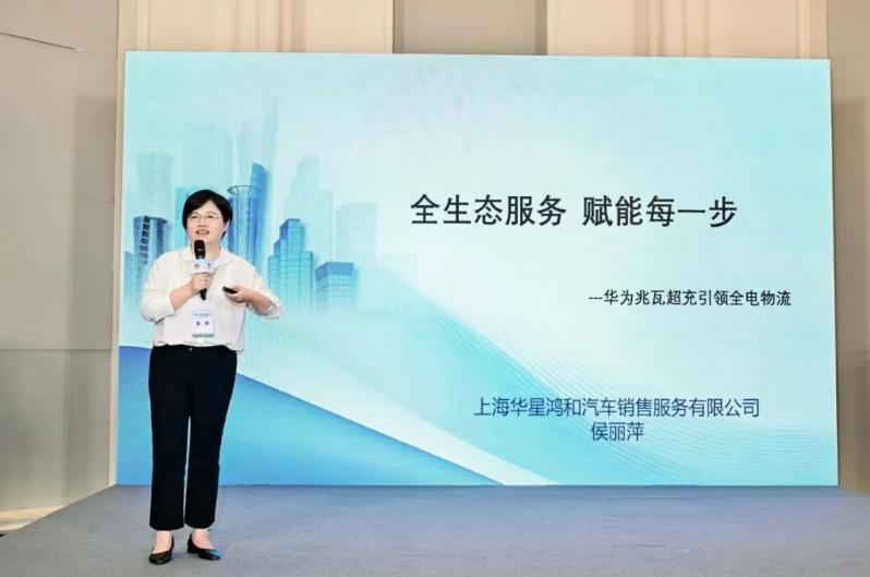 上海华星鸿和汽车销售有限公司副总经理侯丽萍发表《全生态服务 赋能每一步——华为兆瓦超充引领全电物流》主题演讲,介绍兆瓦超充项目的整体情况。围绕上海-江苏-浙江长三角物流干线,第一阶段布局12个站点,在建3个站点,其中临港站已于今年4月投入运营;另外在建宝山站和外高桥站,整体路线规划在北线6个站,南线6个站,展示了在兆瓦超充生态领域稳扎稳打的决心。