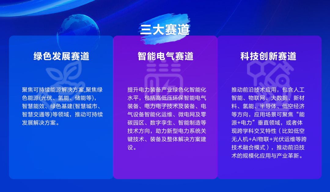 大赛围绕正泰集团“绿色能源、智能电气、智慧低碳”三大产业板块,赛道设置覆盖新能源技术、智能电气装备、人工智能、新材料等极具潜力的创新领域。绿色发展赛道聚焦新能源技术、智慧能效与绿色基建,鼓励青年探索可再生能源的应用场景;智能电气赛道围绕电力设备、微电网、数字孪生等领域,推动电力装备智能化升级;科技创新赛道则面向人工智能、新材料、半导体等方向,挖掘具有产业潜力的颠覆性技术。