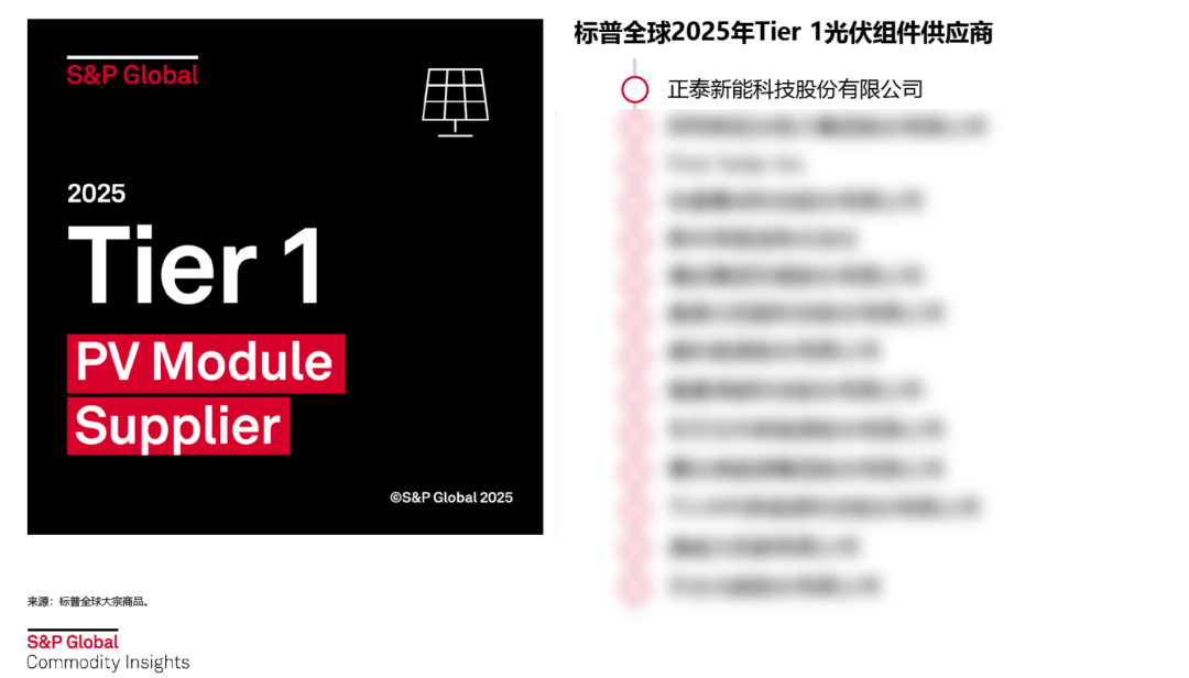 除本次入选标普全球大宗商品Tier 1榜单之外,正泰新能曾九次被国际权威测试机构Kiwa PVEL评为“Top Performer”组件供应商,并多次被彭博新能源财经(BNEF)列为“全球光伏组件第一梯队供应商”,持续印证正泰新能在产品性能、可靠性与全球交付方面的卓越能力。