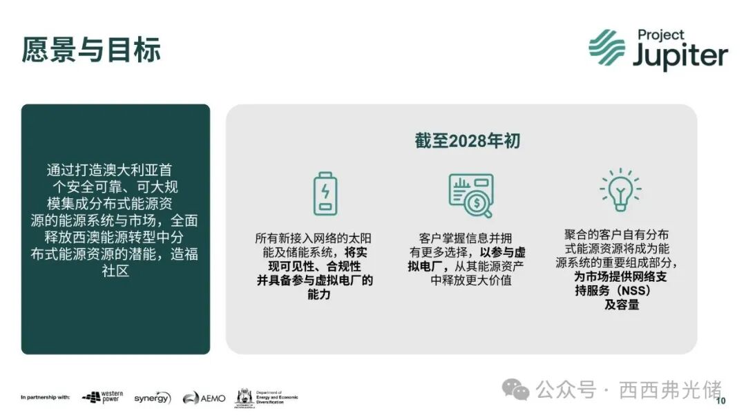 “木星计划”远超单纯的技术部署,它是一场涵盖能源市场与监管领域的全方位变革。通过技术、市场和政策的紧密协作,它正为西澳乃至整个澳大利亚的能源转型树立榜样。在项目合作中,Western Power负责构建关键技术平台,西澳能源政策局(Energy Policy WA)致力于制定支持性法规,而Synergy和澳大利亚能源市场运营商(AEMO)则确保DER能真正融入市场并创造价值。这种多方协同的模式,正在催生澳大利亚首个与批发市场深度融合的“活体DER市场”。这一突破性的进展不仅将显著提升电网的弹性和安全性,还将赋能家庭和企业,让他们能从自身能源资产中获得经济回报,从而加速清洁能源的普及,并为所有消费者带来更高效的能源管理和更低的用电成本。ARENA于2025年9月2日举办了一场行业网络研讨会,分享了项目在初期阶段积累的宝贵经验。研讨会特别介绍了《愿景与影响路径报告》和《国家协同报告》这两份关键里程碑文件,深入阐述了项目的愿景、影响评估框架,以及其如何与澳大利亚国家能源转型战略保持一致。