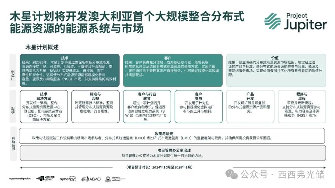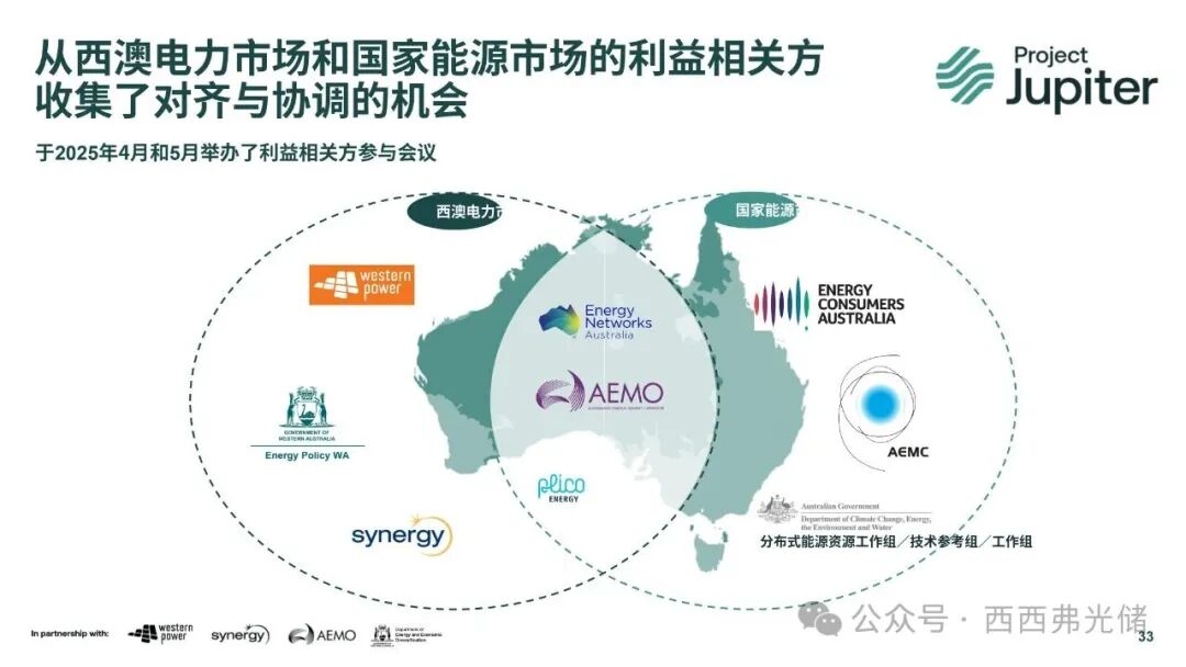“木星计划”的实施是一个跨领域、多方协同的复杂工程。该项目的成功依赖于Western Power、Synergy、澳大利亚能源市场运营商(AEMO)以及西澳能源政策局(Energy Policy WA)的紧密合作。ARENA作为联邦政府的资助机构,为项目提供了2080万澳元的资金,并从宏观层面提供了战略指导。