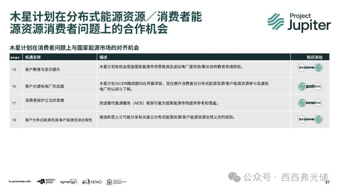 “木星计划”之所以被认为是一项具有开创性的项目,正是因为它构建了一个跨越技术、市场和政策领域的全面合作模型。项目的成功并非仅依赖于单一方面的突破,而是基于各方角色的清晰界定和紧密协同。如果没有Western Power的技术解决方案,DER资产的协调将无从谈起;但如果没有Energy Policy WA的政策支持,这些技术创新将无法在法律和监管框架下安全、公平地大规模推广;而如果没有Synergy和AEMO的市场机制,客户将缺乏参与的经济激励,DER的价值也无法真正实现。