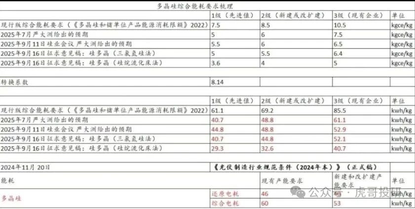 三级能耗标准限制现有产能,硅料、拉棒、切片环节三季标准均高于2024年行业平均水平,现有达不到能耗标准的产能后续可能被强制关停。正式的征求意见稿出来,能耗调控超预期。光伏行业作为反内卷的前线,率先收紧了能耗标准,也就意味着反内卷开始进入纵深,推动产能收缩。