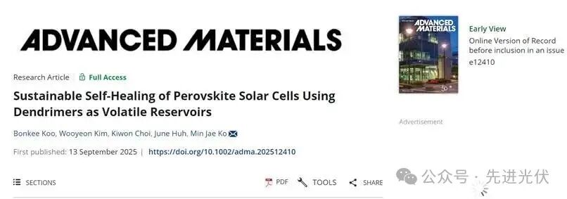 Koo, B., Kim, W., Choi, K., Huh, J., Ko, M. J. Sustainable Self-Healing of Perovskite Solar Cells Using Dendrimers as Volatile Reservoirs.Advanced Materials (2025).