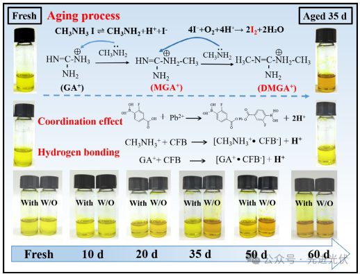 ✅创新分子设计:双功能CFB分子同步解决有机/无机组分失稳问题,实现溶液“保鲜”。