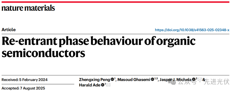 Peng, Z., Ghasemi, M., Michels, J.J. et al. Re-entrant phase behavior of organic semiconductors. Nat. Mater. (2025).