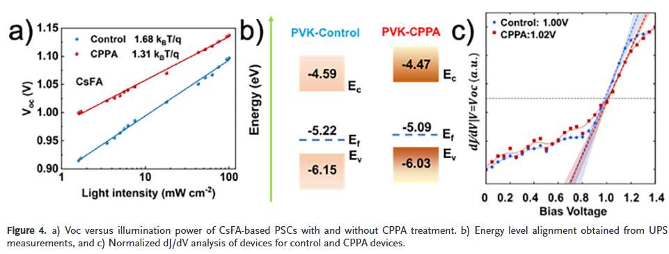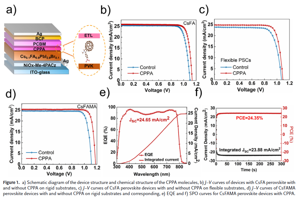 - 显著提升器件性能:CPPA中间层使CsFA和CsFAMA基PSCs的PCE分别提升至24.6%和25.1%,并显著提高了填充因子(FF),降低了串联电阻。