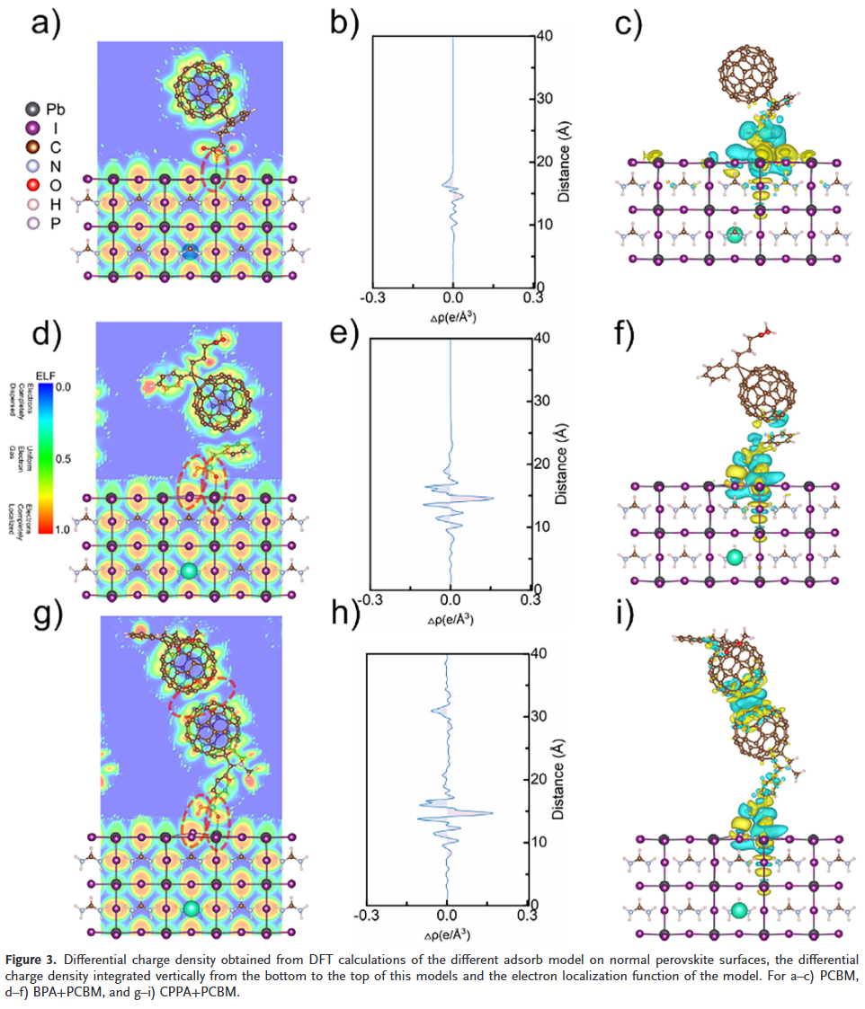 - 多功能界面桥接:CPPA分子通过膦酸基团有效钝化钙钛矿表面缺陷,同时其富勒烯部分与PCBM形成良好接触,充当高效的电荷传输桥梁,显著提升电子提取效率。