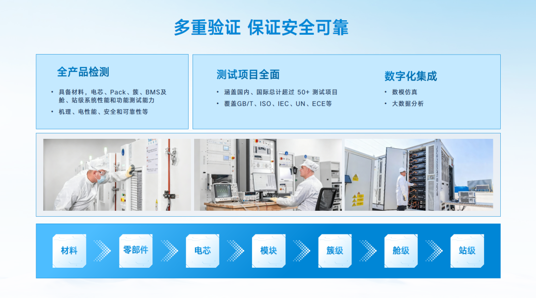 同时,天合储能依托四大研发平台,建立了全链路质量管控的“三全”交付模式,涵盖高精度HIL仿真平台、CNAS级环境舱和MW级系统实证平台,确保系统在不同工况下的可靠性验证,实验范围包含国内外50余项标准认证。凭借对安全的极致追求,目前天合储能在全球范围内已实现超过12GWh电站的安全运行验证,至今保持零事故记录,赢得了客户与市场的高度信任。