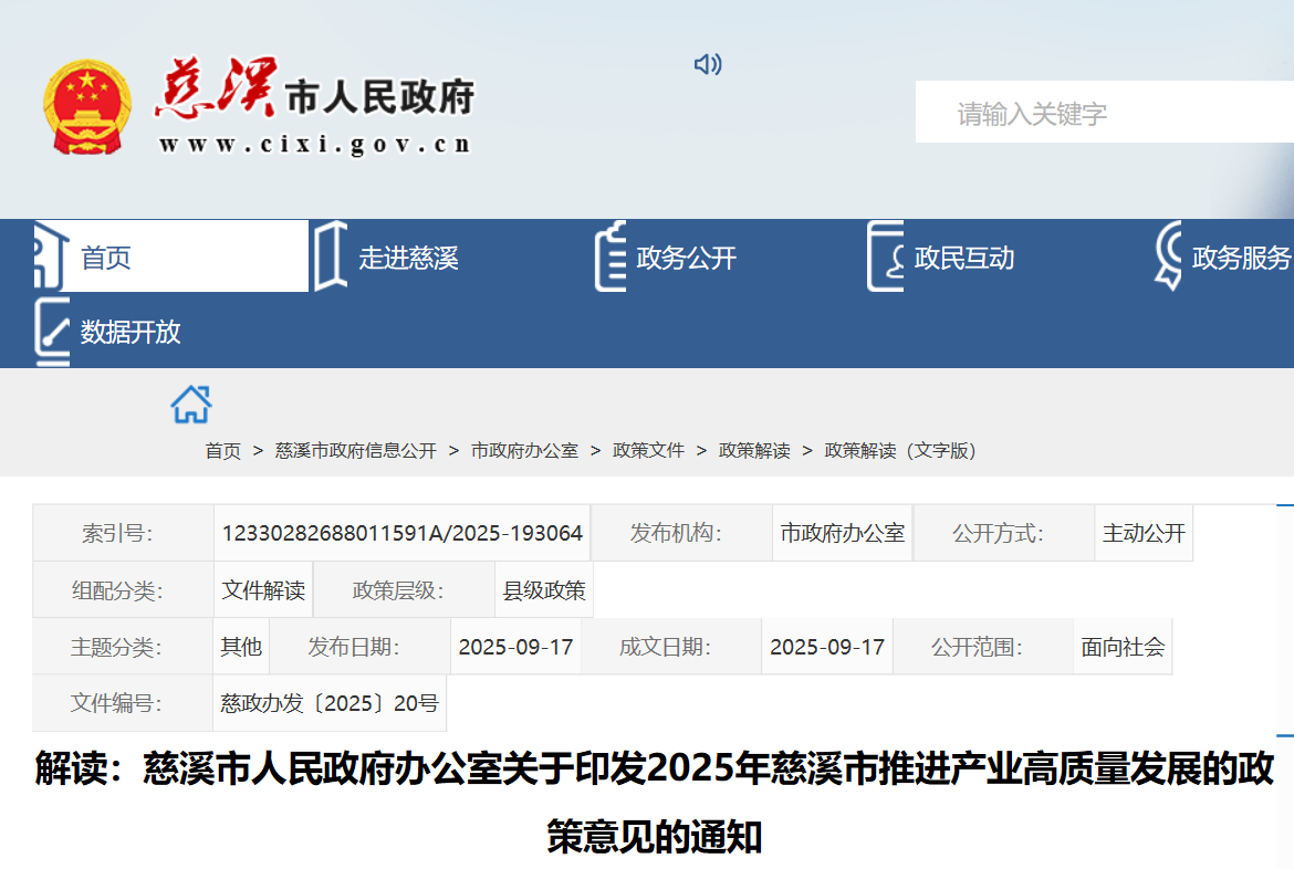 慈溪市人民政府办公室 2025年9月17日印发
