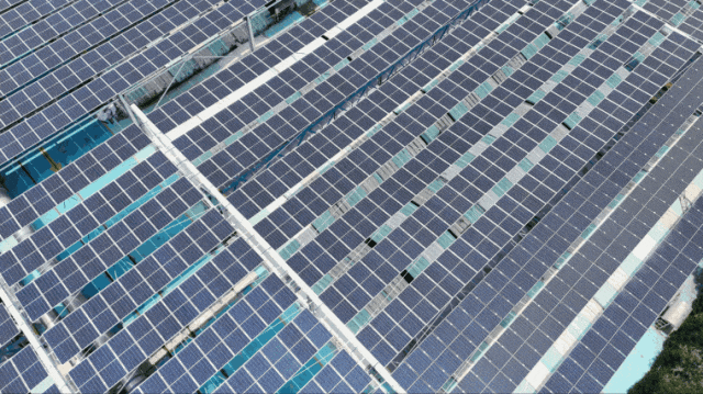 HYPSET柔性支架系统,凭借其25-60m大跨距能力,可以“飞架”于水池之上,无需在水中设立柱,将原本闲置的水面空间转化为清洁能源基地。此外,光伏板的覆盖还能有效抑制藻类繁殖,减少水分蒸发,起到保护水质和节约水资源的双重功效。